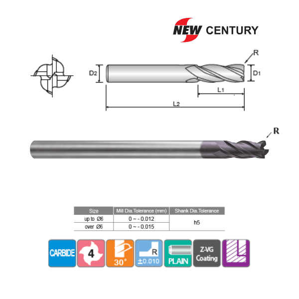 Freza cilindro-frontala pentru prelucrari grele, Carbura, Z=4, R0.5, 10x10x25x100mm, Z-VG Coating, Cod: GFJ7010005