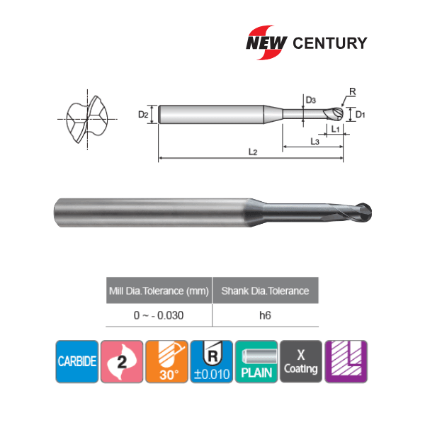 232,10 lei Fara TVAFreza carbura, ball nose, Z=2, C-coating, 0.2x4x0.2x50mm Cod: HPI90002